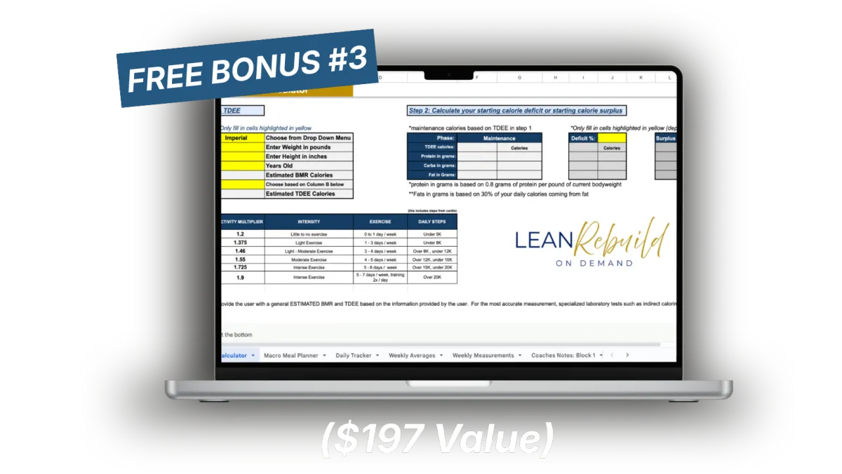 The "Know Your Numbers" System — learn to calculate your own macros for any goal (fat loss, maintenance, or building) so you never have to pay another coach to figure this out for you